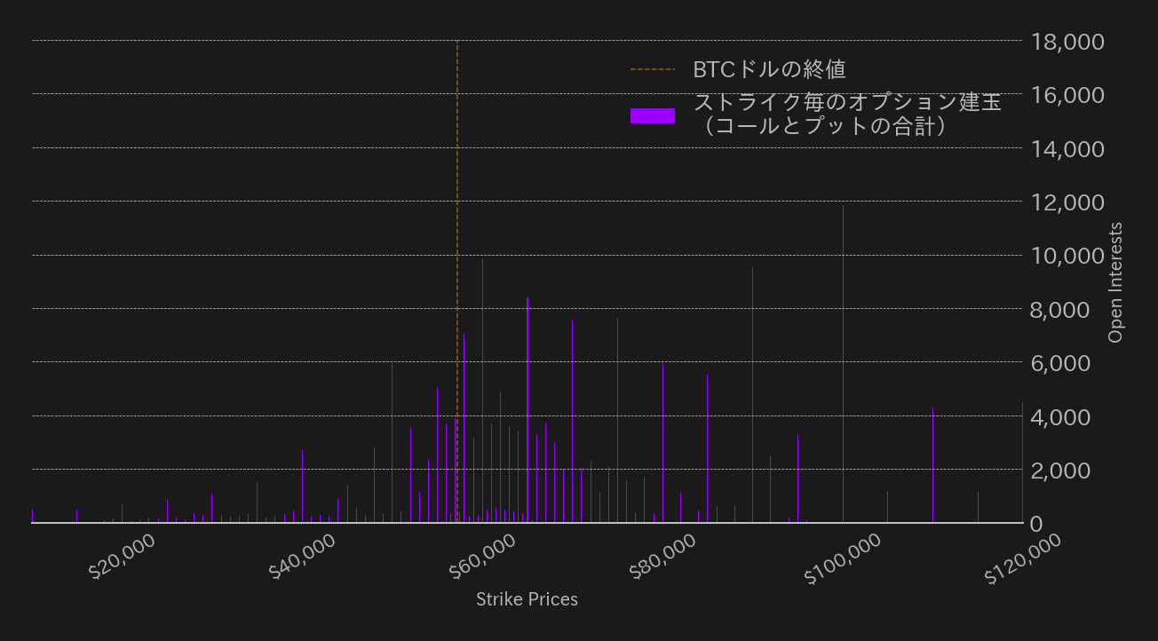 それまでにBTC相場がどこまで下げるかも問題で、7月5日時点で相場は既に心理的節目の60,000ドルを割り込み、高値レンジ下限の56,500ドルも下抜け50,000ドル台中盤まで下げている。ただ、意外にもBTCのオプション市場では、50,000ドル台前半やそれ以下のアウト・オブ・ザ・マネー(OTM)のプットを積極的に物色する動きは確認されない(第5図)。勿論、今からセリングクライマックスがくるとすれば、相場は心理的節目の50,000ドルまで下値余地がある見ているが(第6図)、オプション市場の動きから鑑みるに、市場はMt.Goxの弁済をこなせば相場は速やかに60,000ドル周辺まで復調し、50,000ドル台中盤以下で相場が停滞する可能性は低いことを織り込んでいると指摘される。