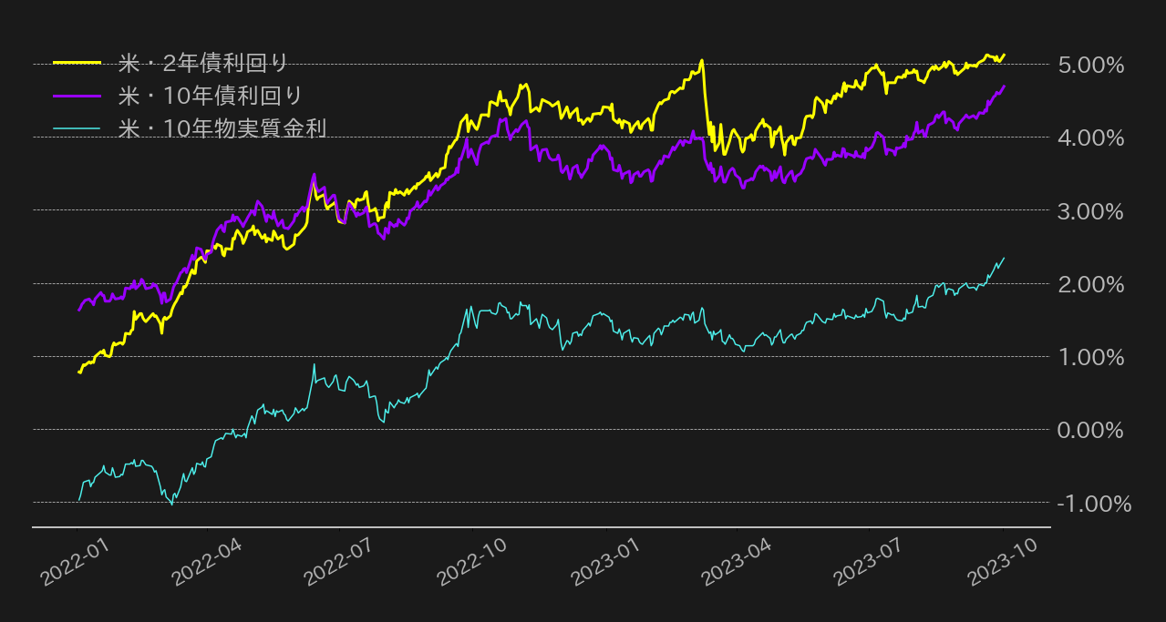 しかし、20日のFOMCでは、市場の期待通り金利据え置きが決定されたものの、経済見通し(SEP)では年内残り一回の利上げの可能性が示唆されたことに加え、2024年の利下げ幅が6月見通しの100ベーシスポイント(bp)から50bpと、来年からの金利見通しが引き上げられた。これを受けてBTC相場は20日、27,500ドル乗せに失敗し失速すると、21日には米国でトリプル安が発生し、リスクオフムードが波及する形で上げ幅を縮小。節目26,000ドルはなんとか維持したが、米連邦準備理事会(FRB)がタカ派的な姿勢を強めたことと、予算案を巡る協議の難航で米政府機関閉鎖懸念が台頭し、米長期金利が15年ぶり高水準まで上昇したことを背景に、上値は圧迫された。