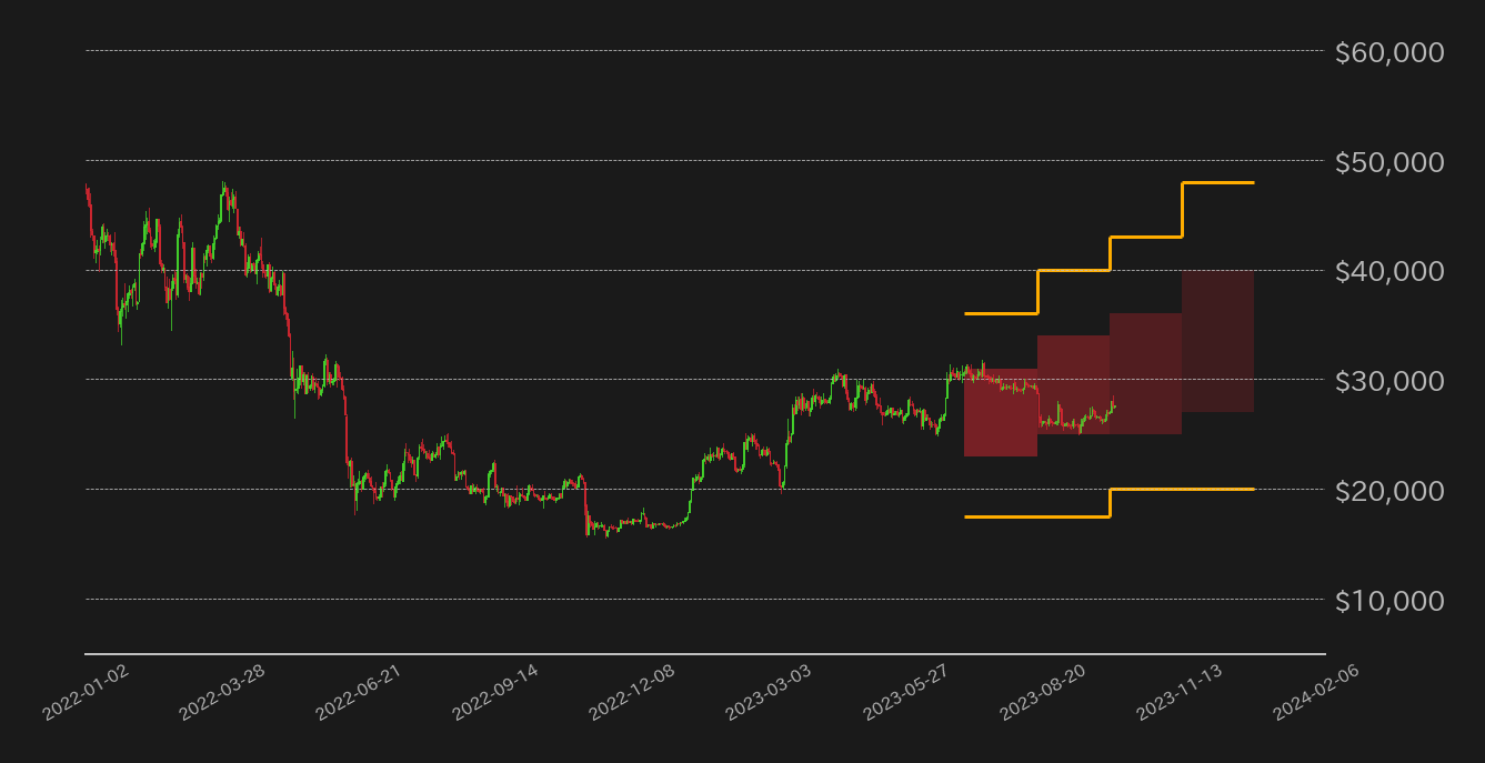 既に半年近く25,000ドルから31,500ドルレンジでの推移が続くBTCだが、今月は年末にかけての上昇トレンド突入に向けた準備期間の終盤となるか。