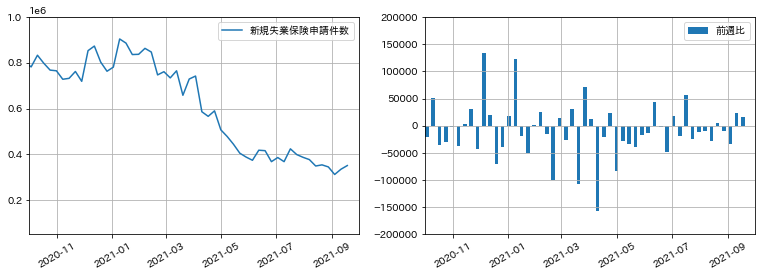 ただ、FRBとしても、11月の会合で本当に踏み込んだ決断ができるかわずかな不安要素も示される形だったかと見受けられます。1番の懸念としては、8月の雇用統計で非農業部門雇用者数が大幅に下振れたことで、21年末時点の失業率見通しが引き上げられています。声明やパウエル議長の記者会見からは緩和縮小の計画が練られていることは明確ではあるものの、それはあくまで経済回復が継続して確認されればの話なので、9月分の雇用統計や失業保険の新規申請件数などが引き続き焦点となります。