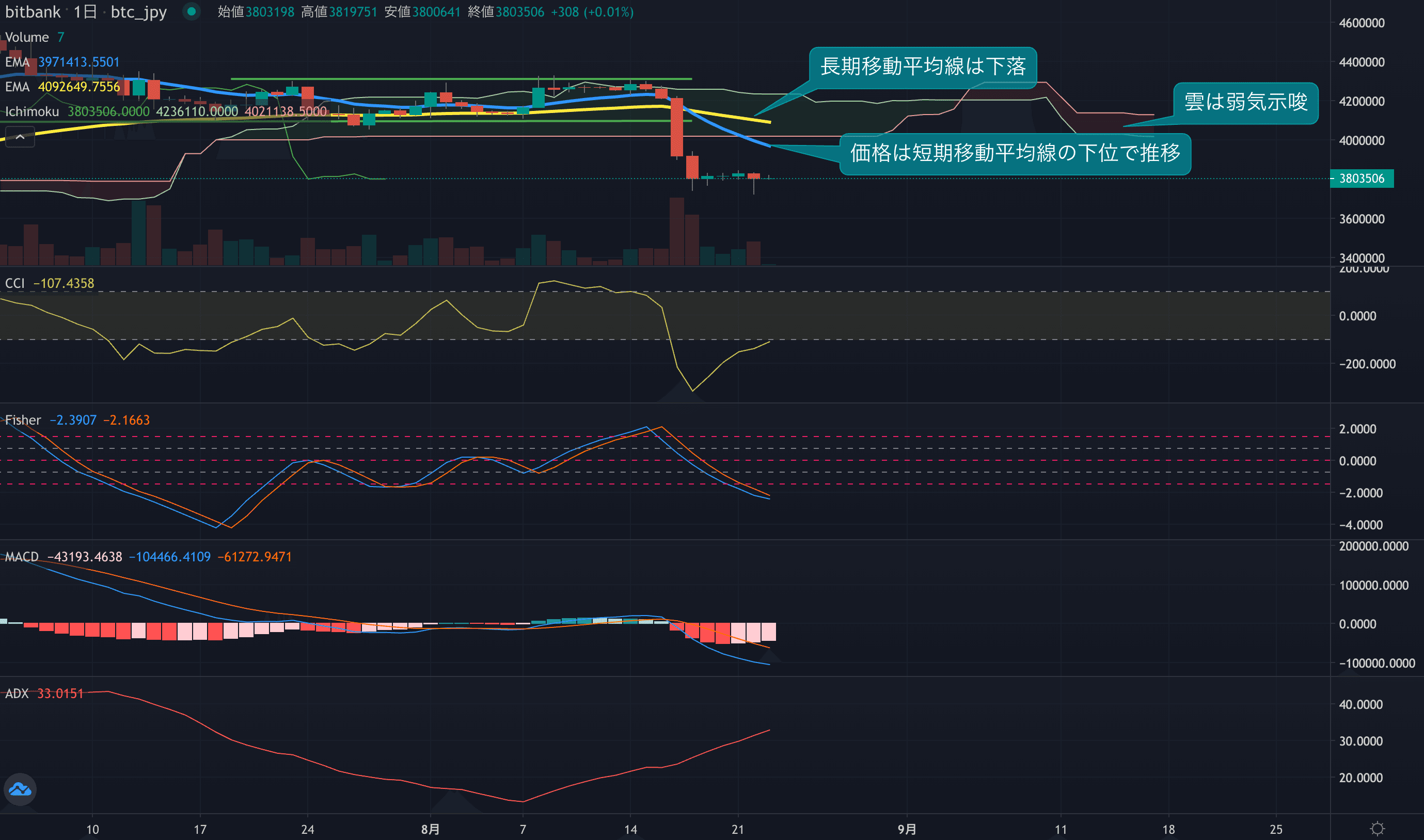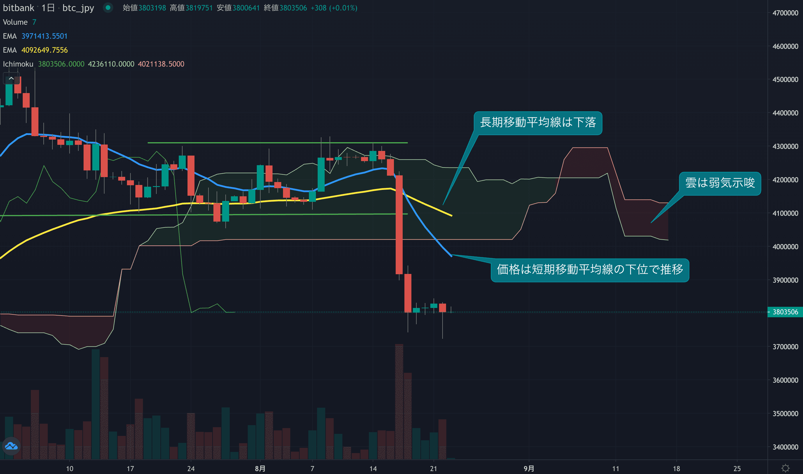 一時的に価格は足元の安値を更新、372万円まで下落する場面も