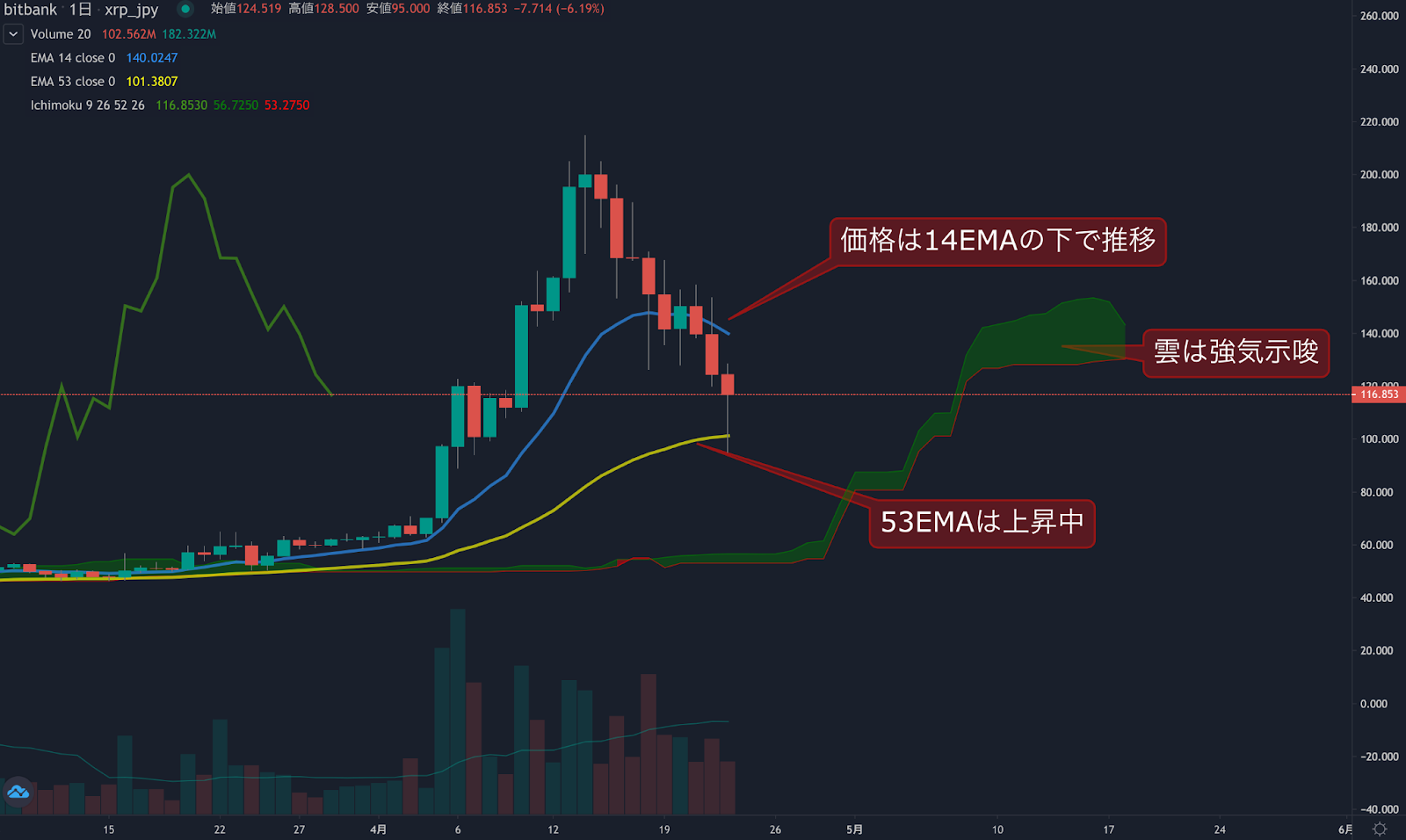 ・弱気バイアス・シグナル:価格が14EMAの下で推移