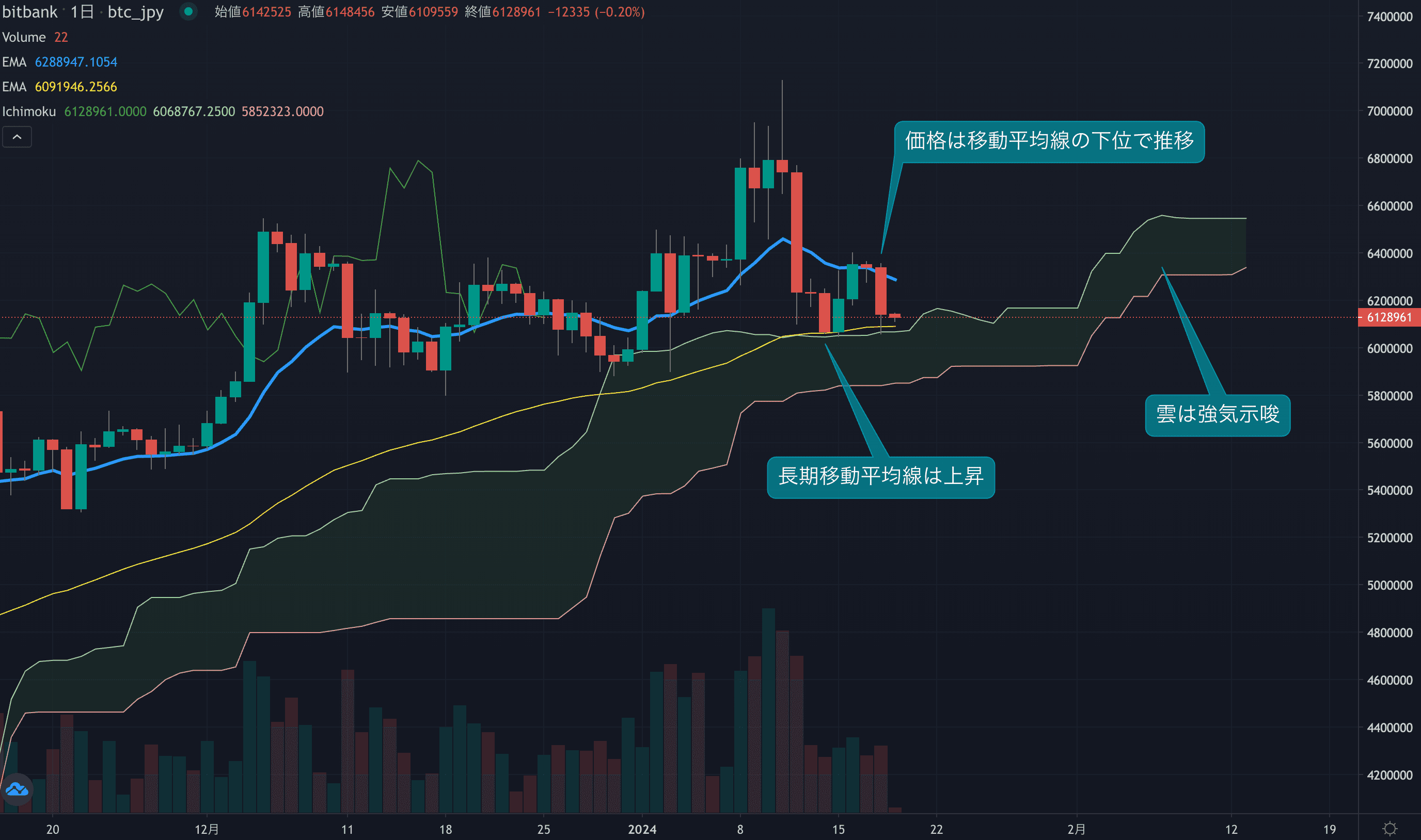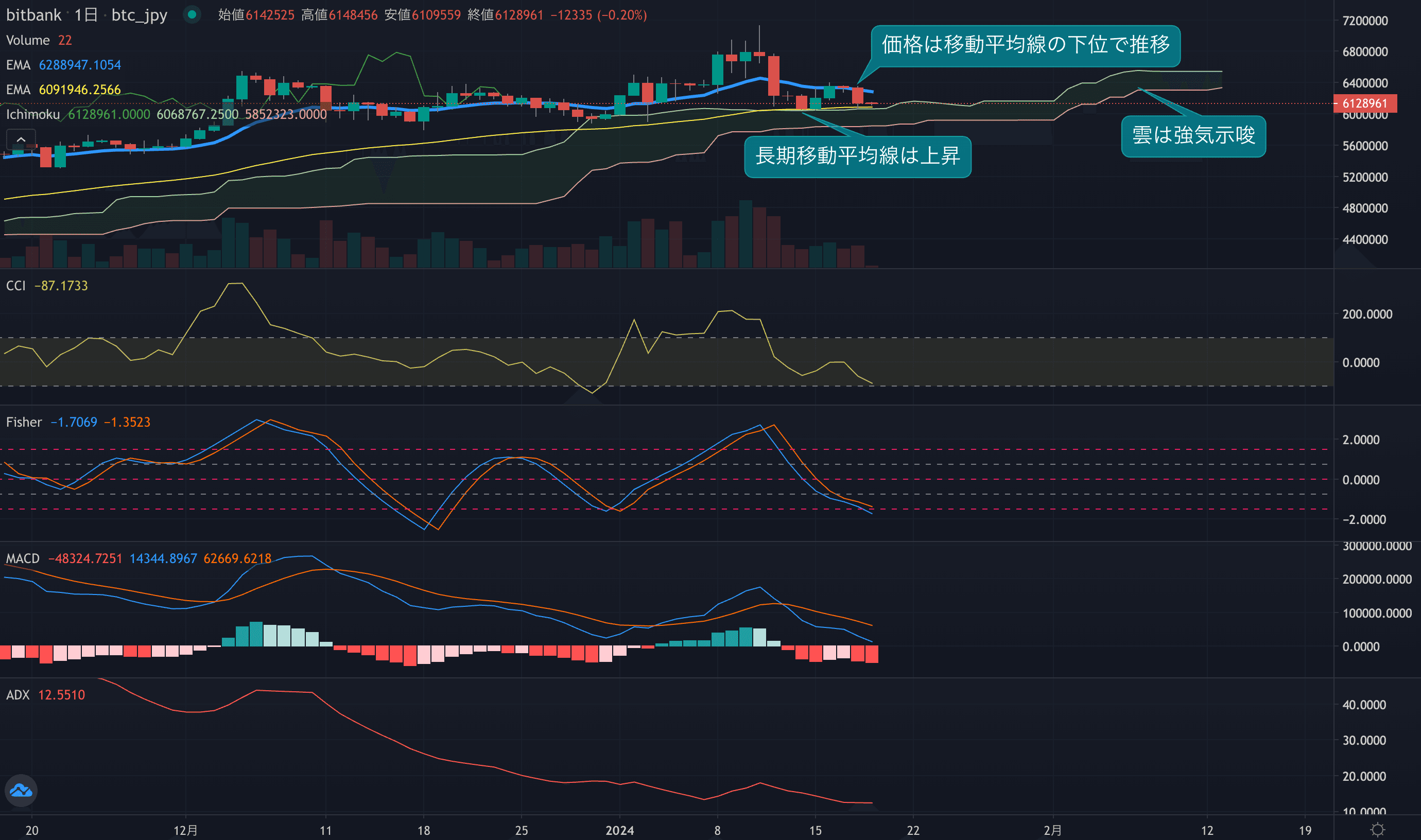 600万円台のサポートラインを試す動き、相場は弱気に傾く